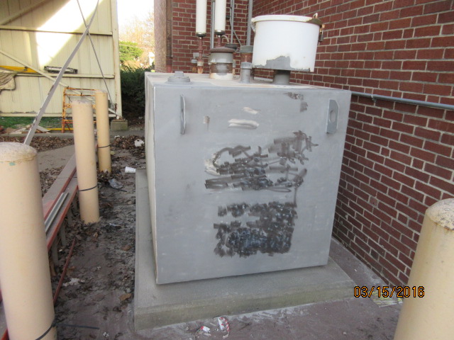 Aboveground storage tank (AST) restoration for an emergency generator providing back up power for a utility provider in Washington, Indiana. The fuel tank was repaired by removing the corrosion and applying a new coat of epoxy. Fuel piping was also repaired, allowing the safe and reliable delivery of diesel fuel to the emergency generator.