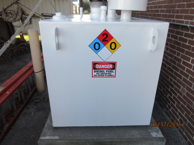 Generator fuel tanks and piping were restored by replacing the fuel piping and modifying to better suit the generators (eliminated air traps). Fuel tanks and fuel pipe were also coated with Sherwin Williams industrial enamel.